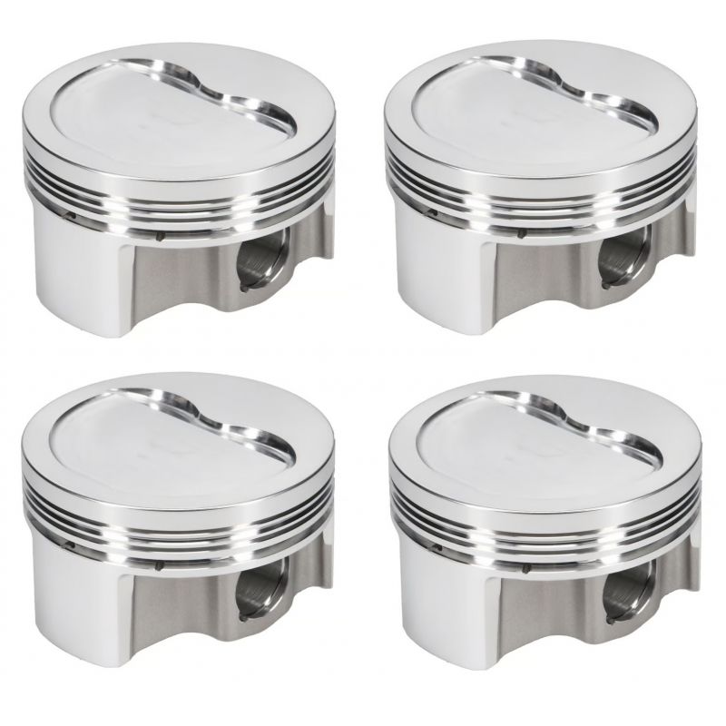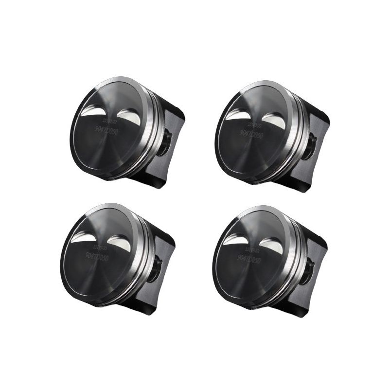 Set van 4 gesmede zuigers JE, Wiseco & Wössner voor Fiat 1.4 L 8 v Turbo 146A8 : boringen 80,50 - 81,50 mm, RV 7,8 - 8,0 :1, zuigerpen 22 mm, zuigerveren meegeleverd op kits Wiseco/Wössner.