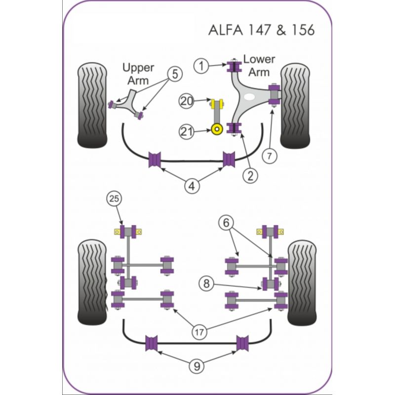 POWERFLEX prestaties hard silent block kit voor ALFA ROMEO 147 (2000 Ã 2010), 156 (1997 Ã 2007) en GT (2003 Ã 2010)