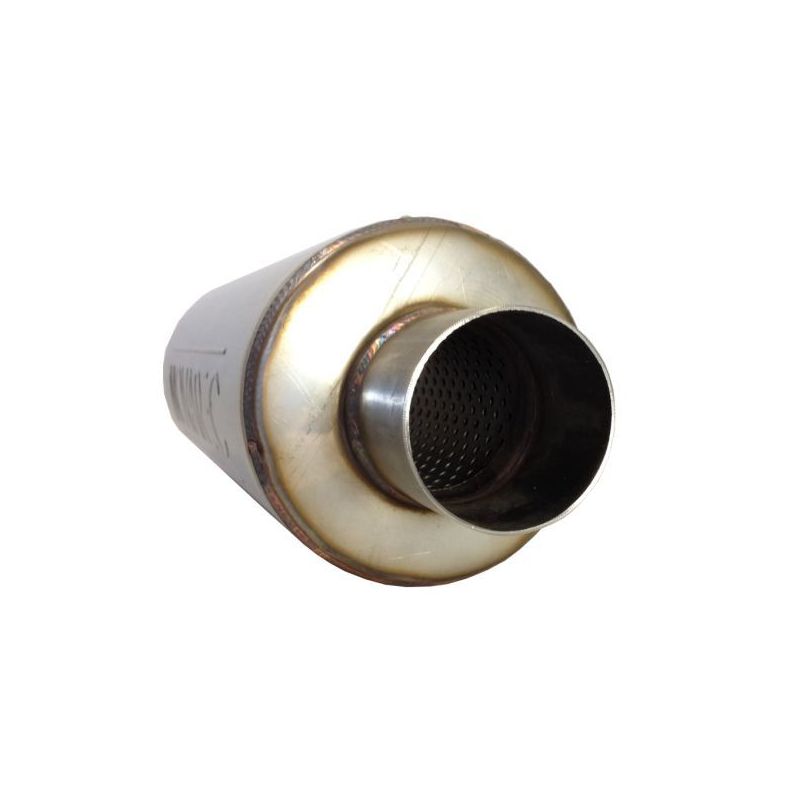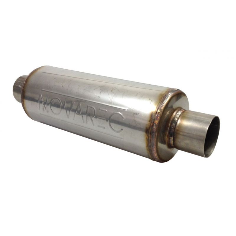 NOVAREC universeele roestvrijstalen geluiddemper à lasbaar met roestvrijstalen buis, binnendiameter 63,5 mm, lengte 450 mm, behuizing 127 mm buitendiameter