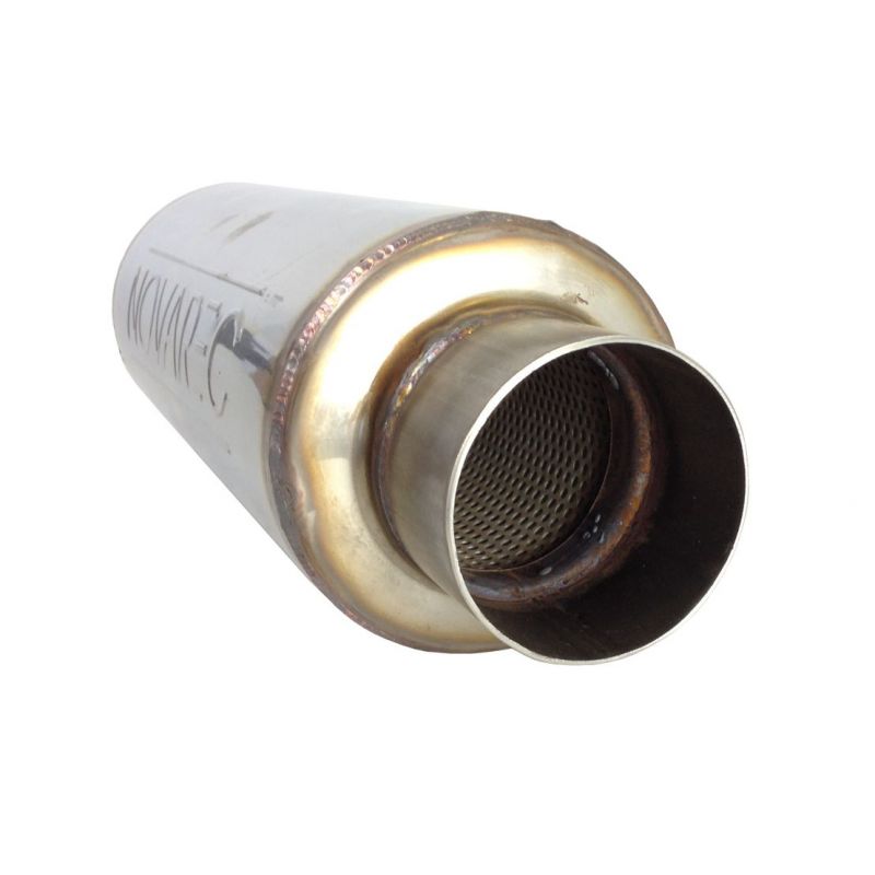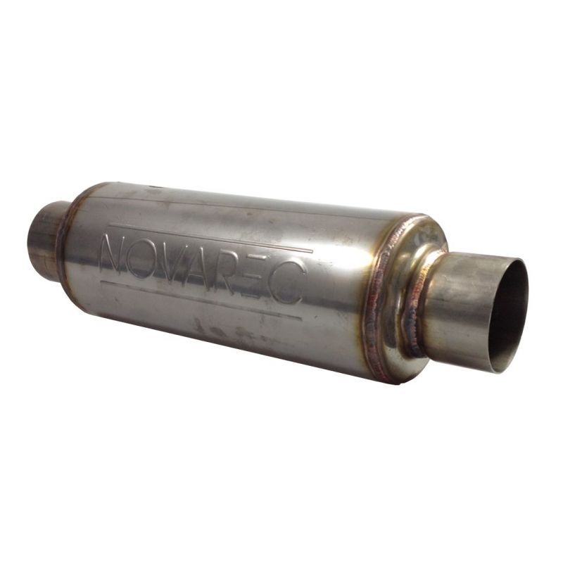 NOVAREC universeele roestvrijstalen geluiddemper à lasbaar met roestvrijstalen buis, binnendiameter 76,1 mm, lengte 450 mm, behuizing 127 mm buitendiameter