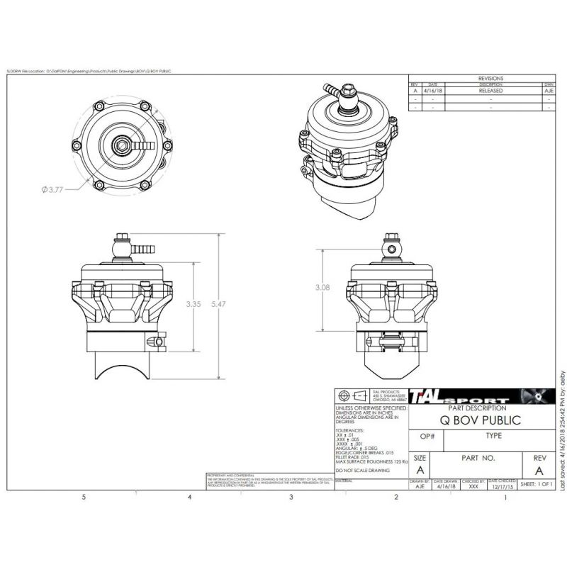 Universele TIAL Q-afvoerklep met flens van aluminium of roestvrij staal en vacuümveer van 11 PSI (0,76 bar)