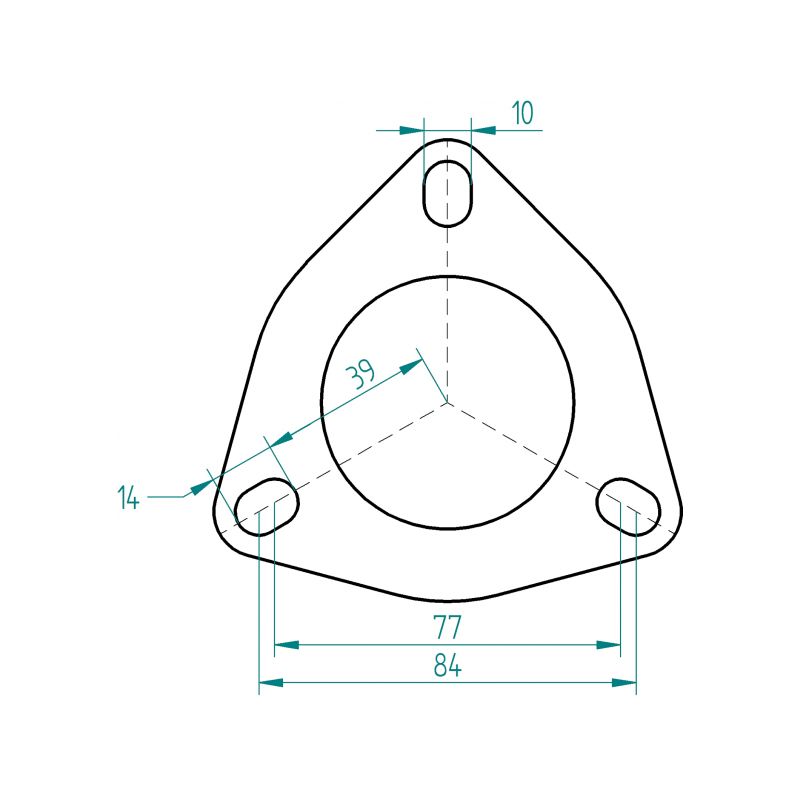 Roestvrijstalen flens met 3 gaten voor lasfittingen voor buizen met een diameter van 55 mm en een wanddikte van 8 mm