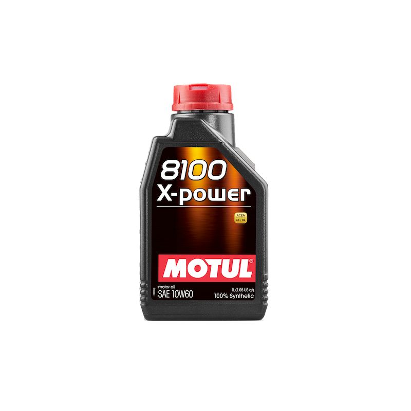 1 liter blik MOTUL 8100 X-POWER 10W60 hoogwaardige 100% synthetische motorolie voor krachtige voertuigen, of deze nu atmosferisch, turbogeladen of supercharged zijn.