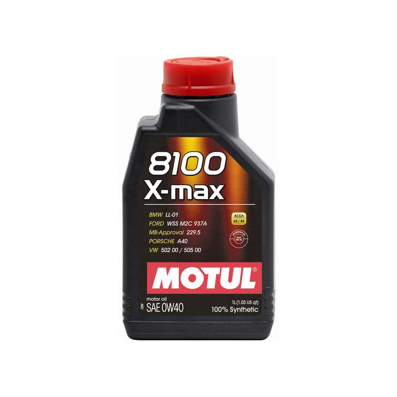 1L blik MOTUL 8100 X-MAX 0W40 hoogwaardige 100% synthetische motorolie voor recente voertuigen, benzine of diesel.