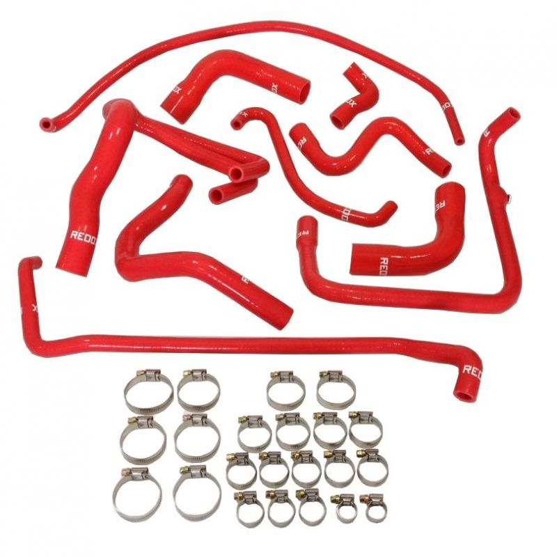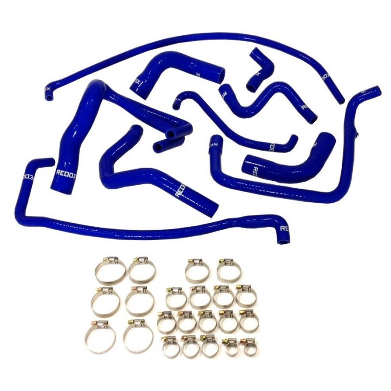 REDOX 10-delige siliconen waterslangenset voor PEUGEOT 205 GTI, XU5JA en XU9JA motorn met excentrische oliekoeler van v--r 1991. Inclusief slangklemmen.