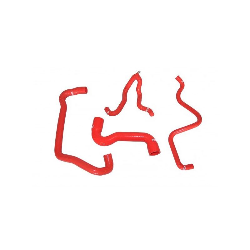 Set van 4 siliconen waterslangen zonder oliekoeler, merk REDOX, met klemmen voor PEUGEOT 106 S16 L3 96-03. Geleverd met slangklemmen.