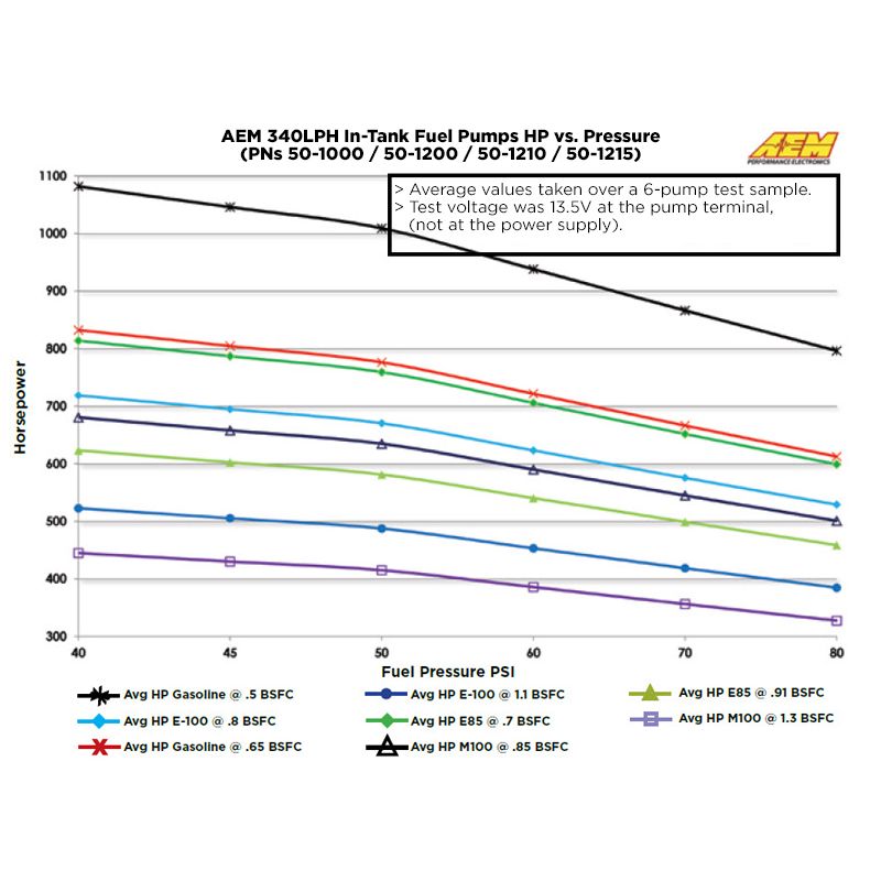 AEM 340L/H interne E85 brandstofpomp, speciaal voor ethanol, zijdelingse aanzuiging, referentie 50-1200