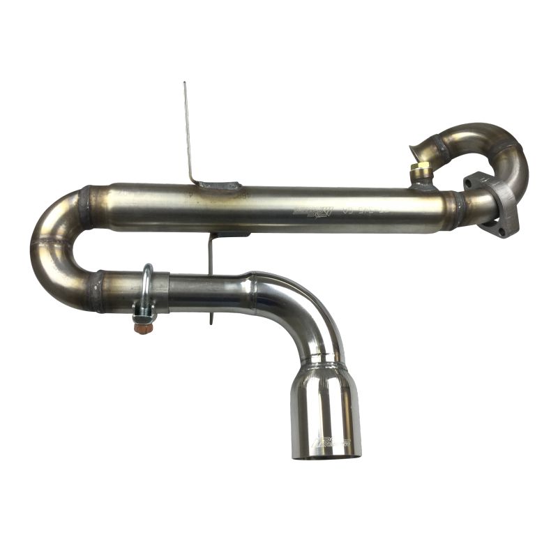 RC RACING roestvrijstalen uitlaat gemaakt van 304L roestvrij staal, met brede lasnaden en nauwe toleranties voor eenvoudige installatie ter vervanging van het originele onderdeel.