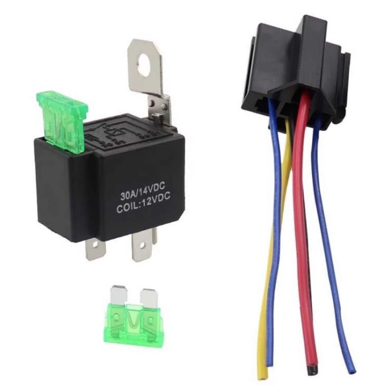 12V wedstrijdrelais met 30A zekering en 4-pins metnector