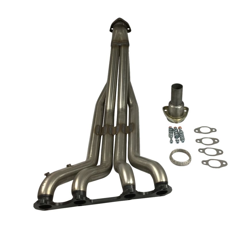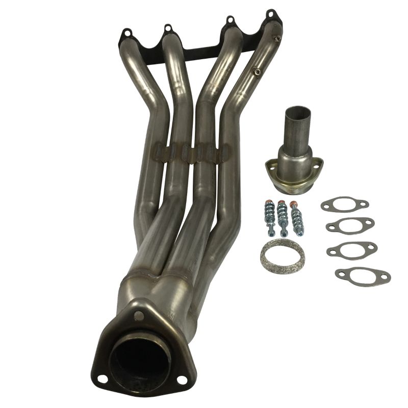4-in-1 spruitstuk met roestvrijstalen verbindingspijp van RC RACING, vervaardigd uit 304L roestvrij staal, met brede lasnaden en nauwe toleranties voor eenvoudige installatie ter vervanging van het originele onderdeel.